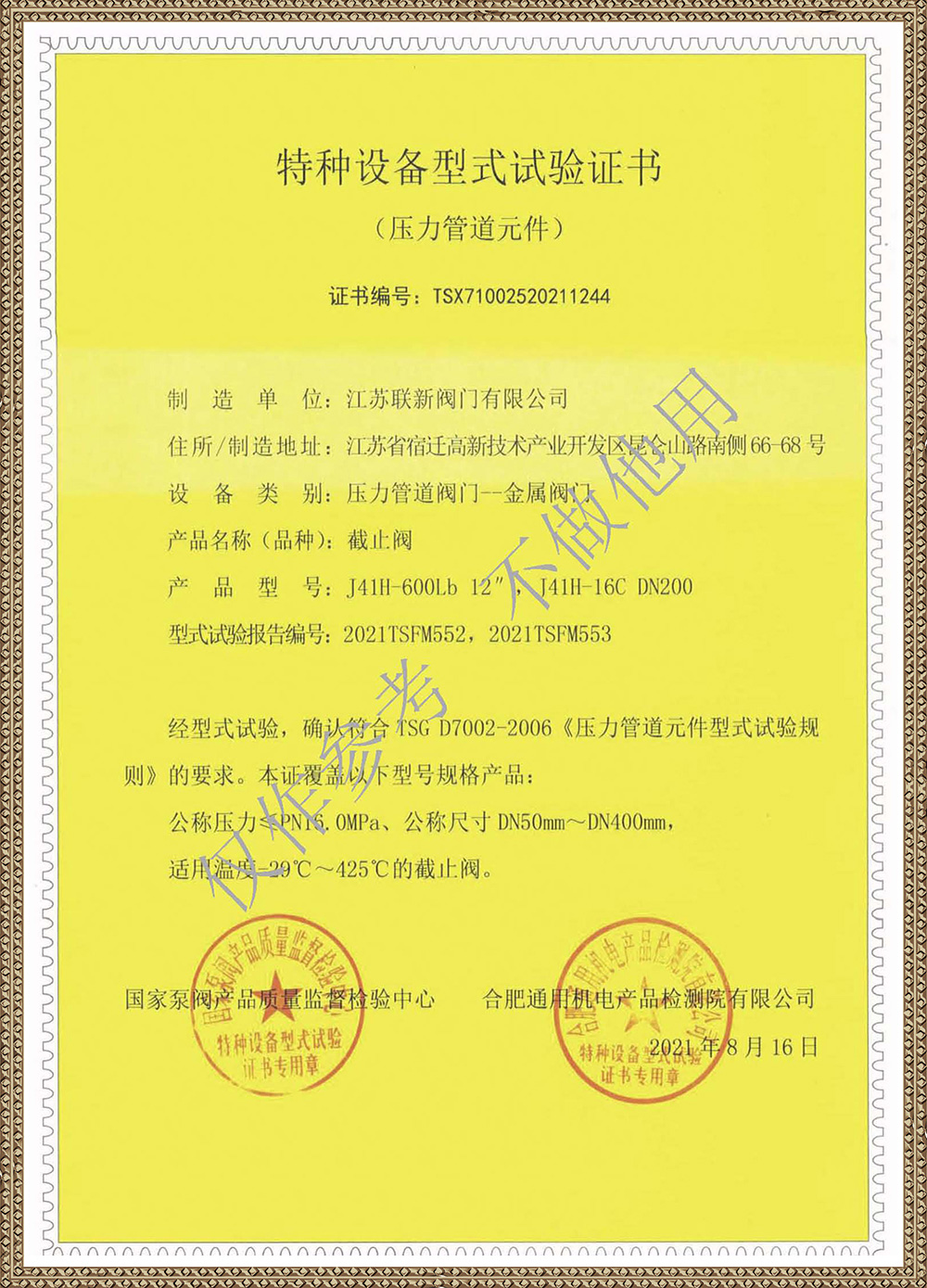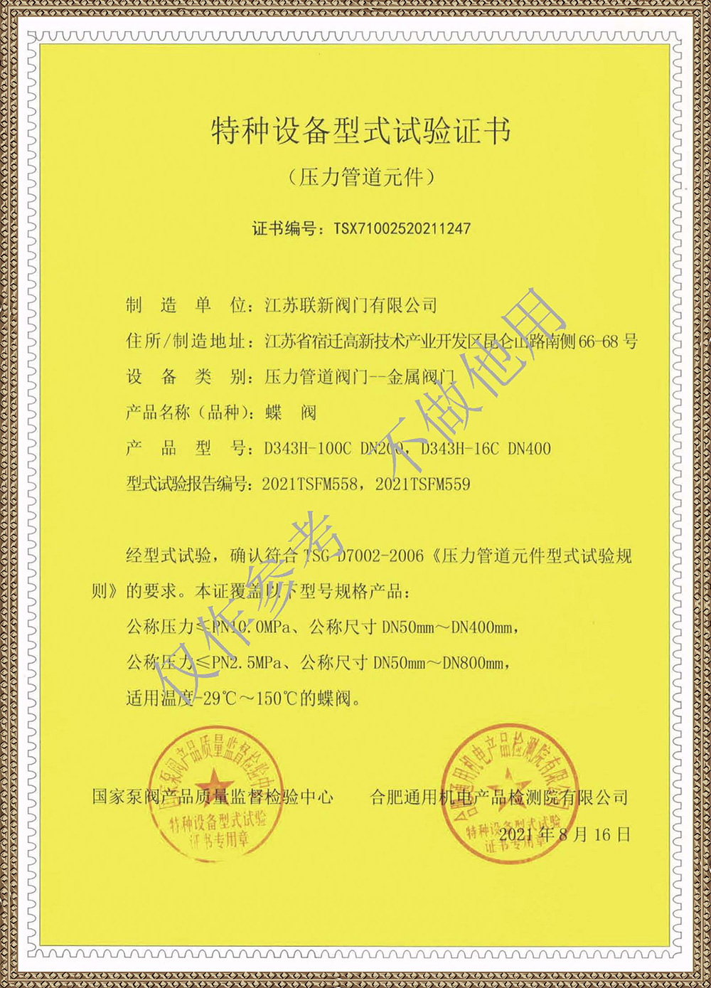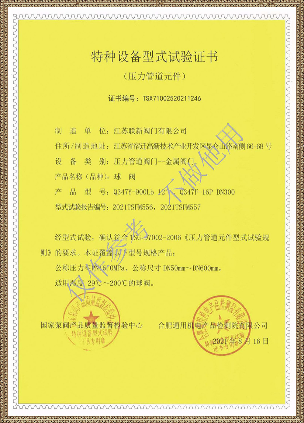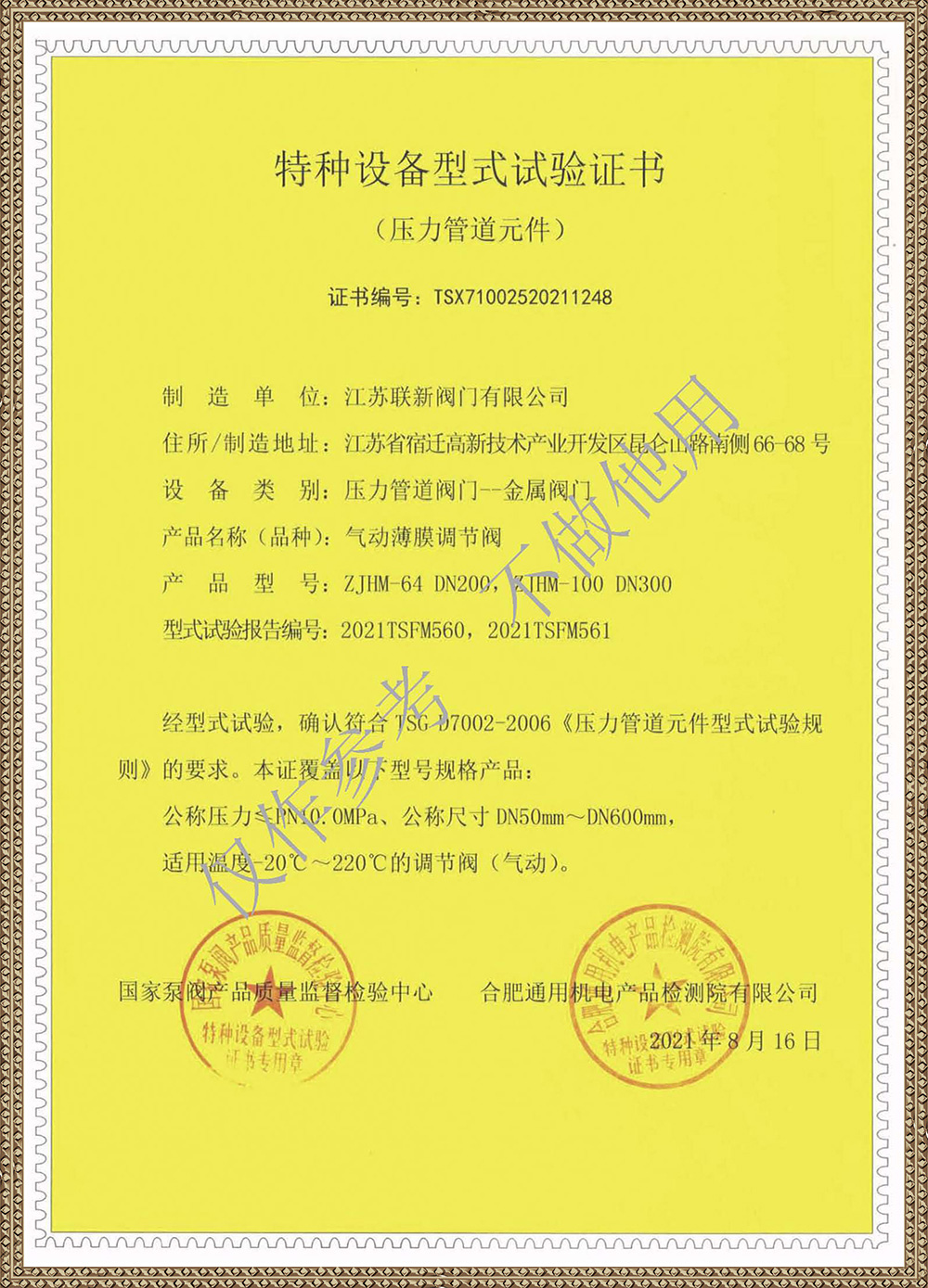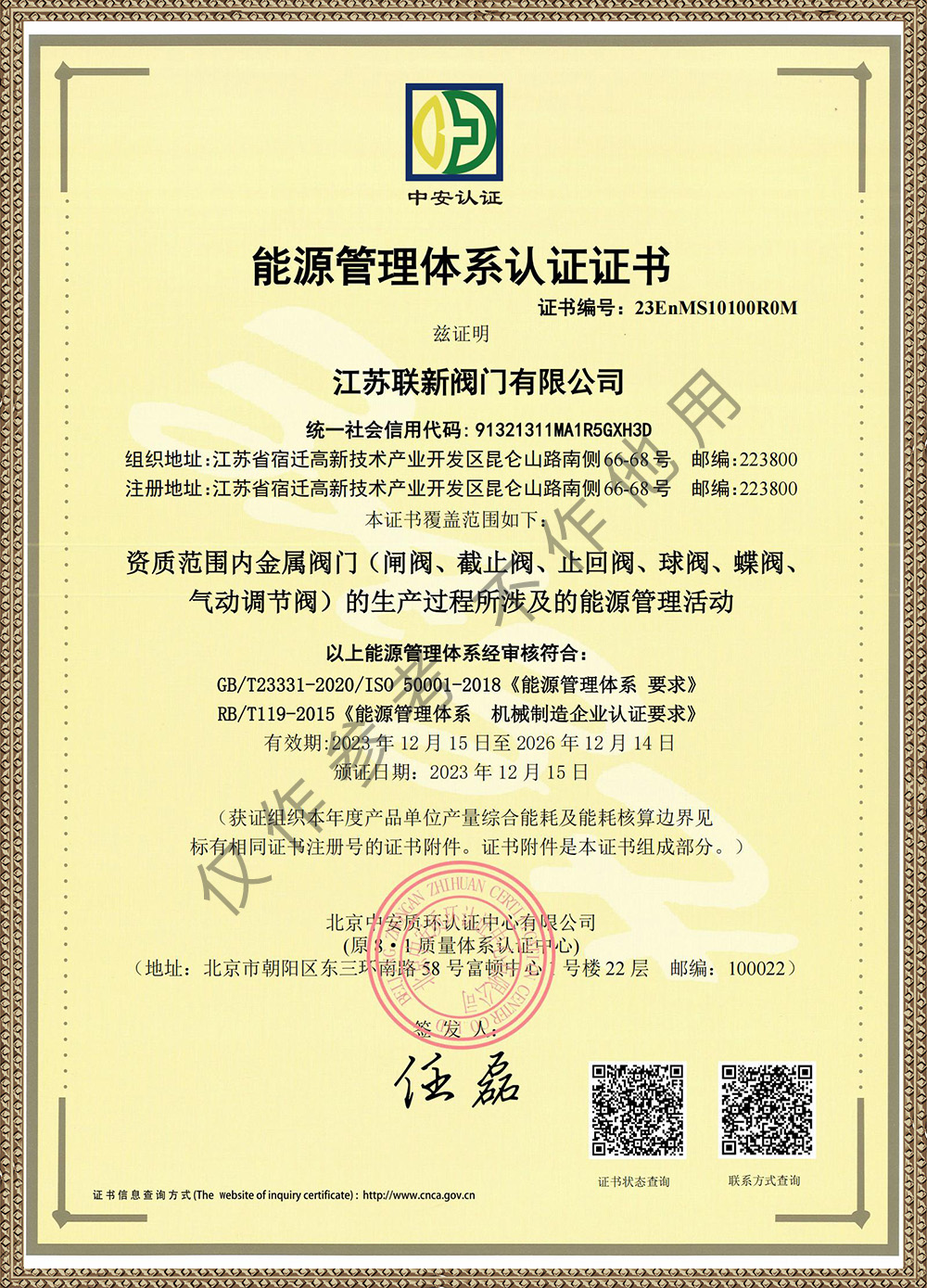 特种设备型式试验证书(球阀) 特种设备型式试验证书(截止阀) 特种设备型式试验证书(蝶阀) 特种设备型式试验证书(止回阀) 特种设备型式试验证书(气动薄膜调节阀) 质量管理体系认证证书 质量管理体系认证证书 职业健康安全管理体系认证证书 职业健康安全管理体系认证证书 环境管理体系认证证书 环境管理体系认证证书 能源管理体系认证证书 上一页123456下一页