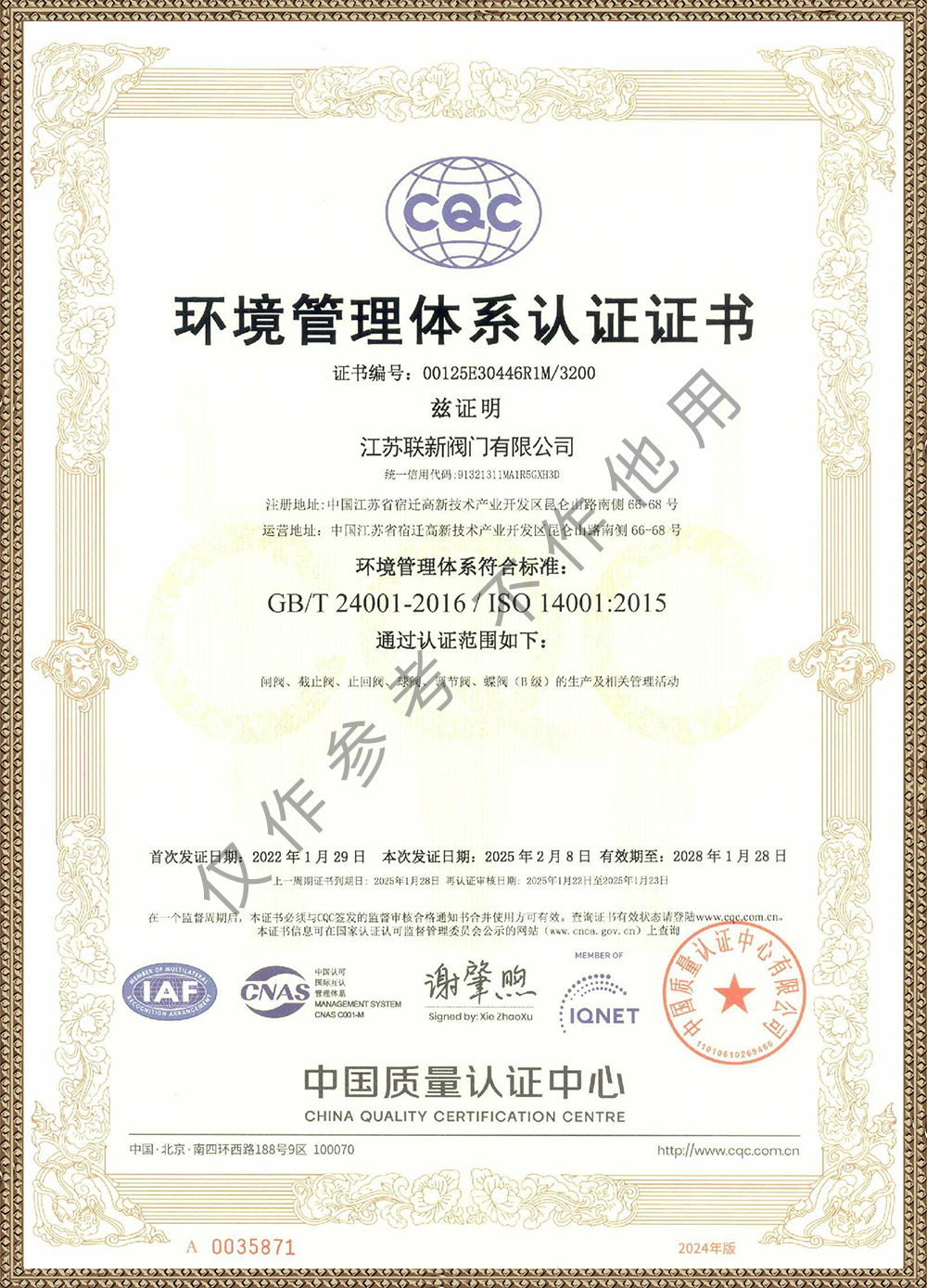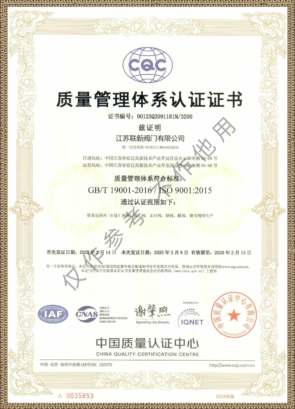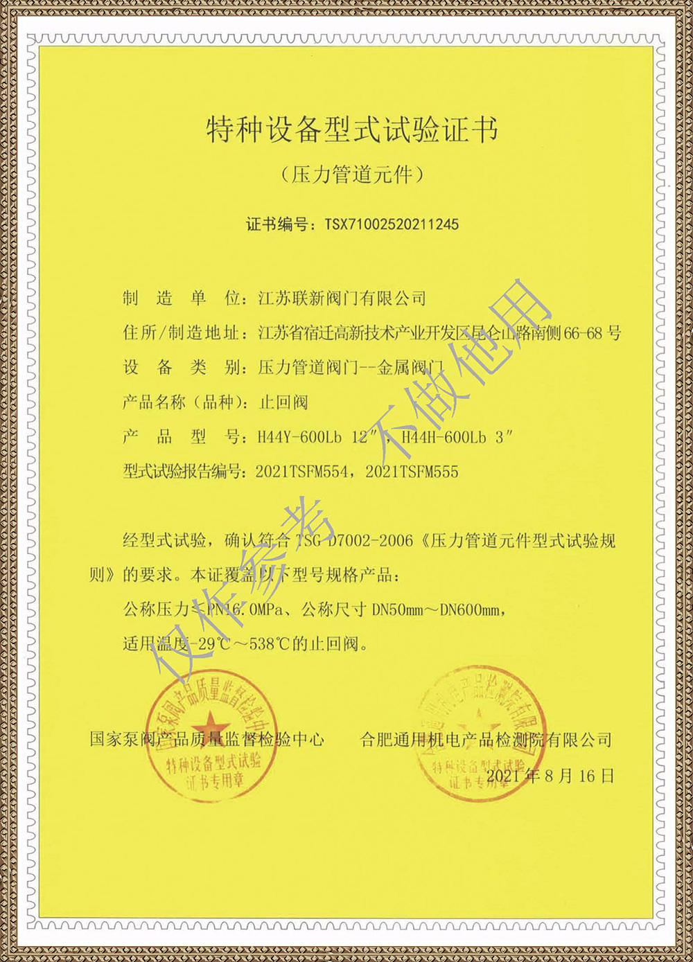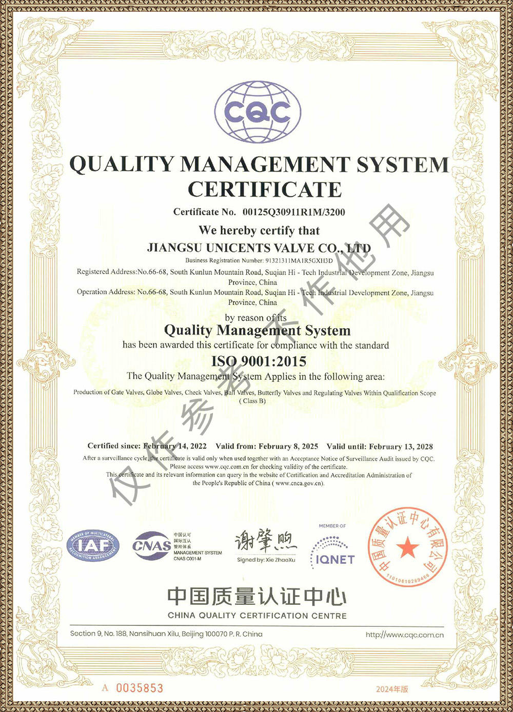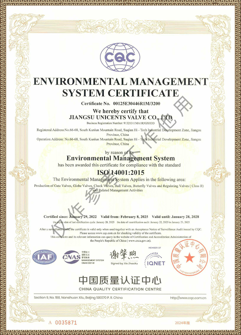 特种设备型式试验证书(球阀) 特种设备型式试验证书(截止阀) 特种设备型式试验证书(蝶阀) 特种设备型式试验证书(止回阀) 特种设备型式试验证书(气动薄膜调节阀) 质量管理体系认证证书 质量管理体系认证证书 职业健康安全管理体系认证证书 职业健康安全管理体系认证证书 环境管理体系认证证书 环境管理体系认证证书 能源管理体系认证证书 上一页123456下一页